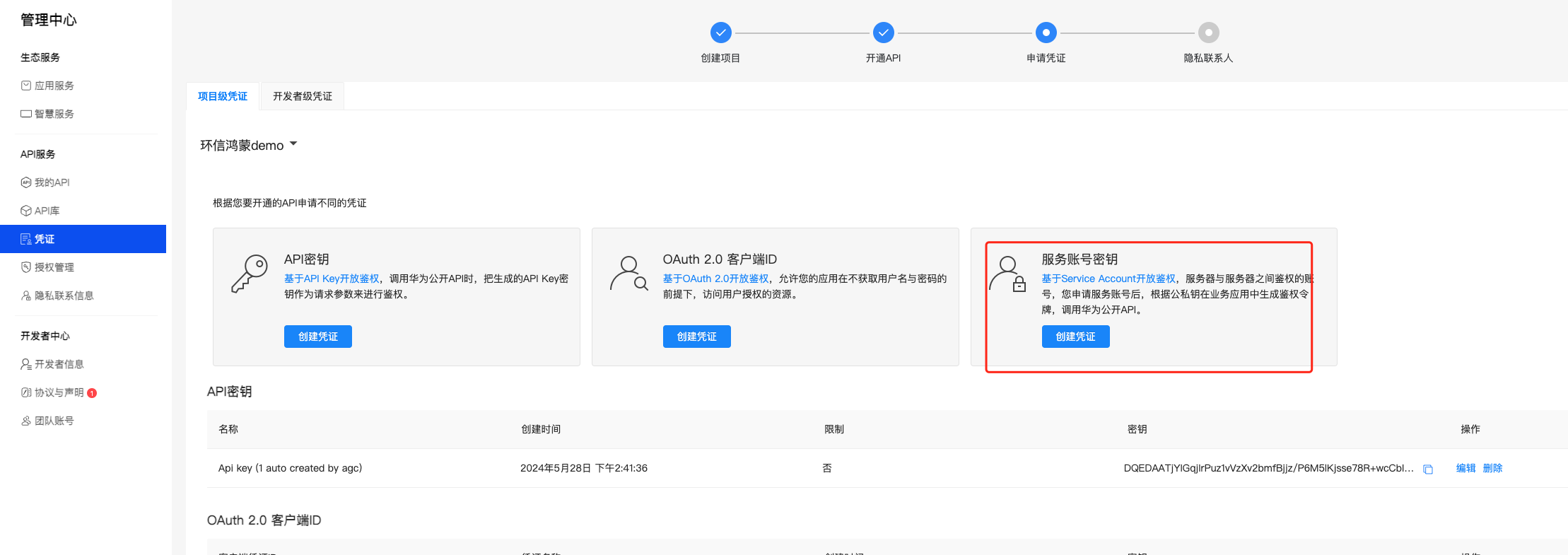 步骤一 申请服务账号密钥
